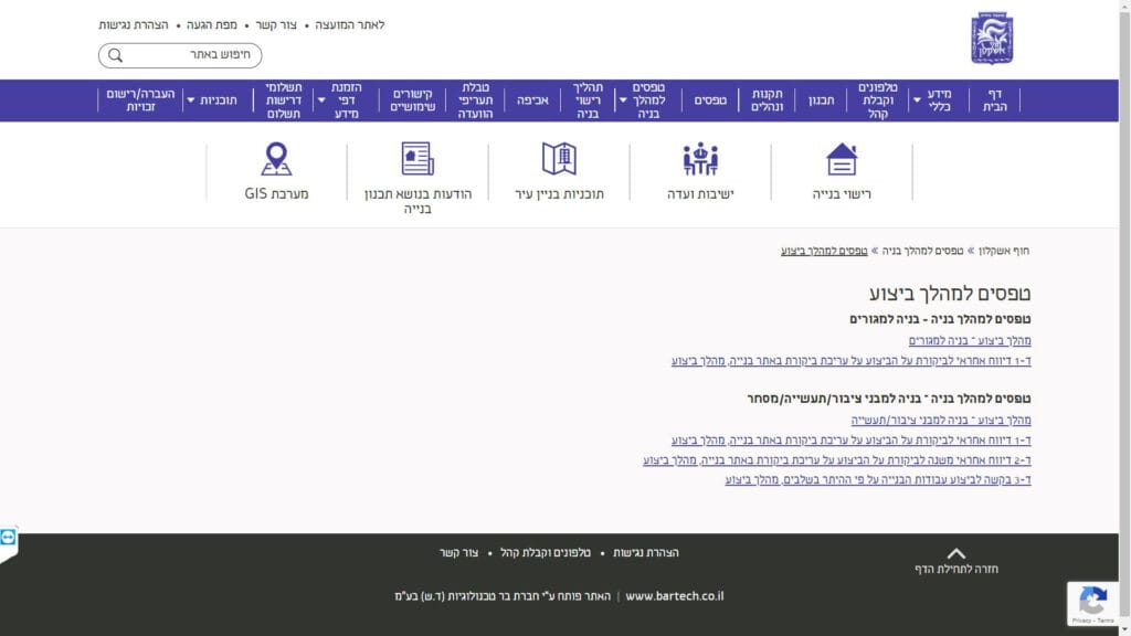 צילום מסך טופס טפסים למהלך בניה - ביצוע טופס מקוון