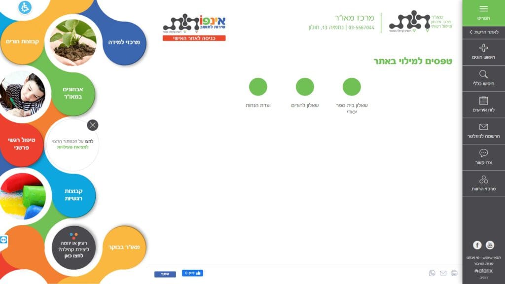 טופס קל » עיריות » עיריות בתל אביב והמרכז » עיריית חולון » חינוך » טופס טפסים מאו"ר (מרכז אבחון וטיפול רשותי)