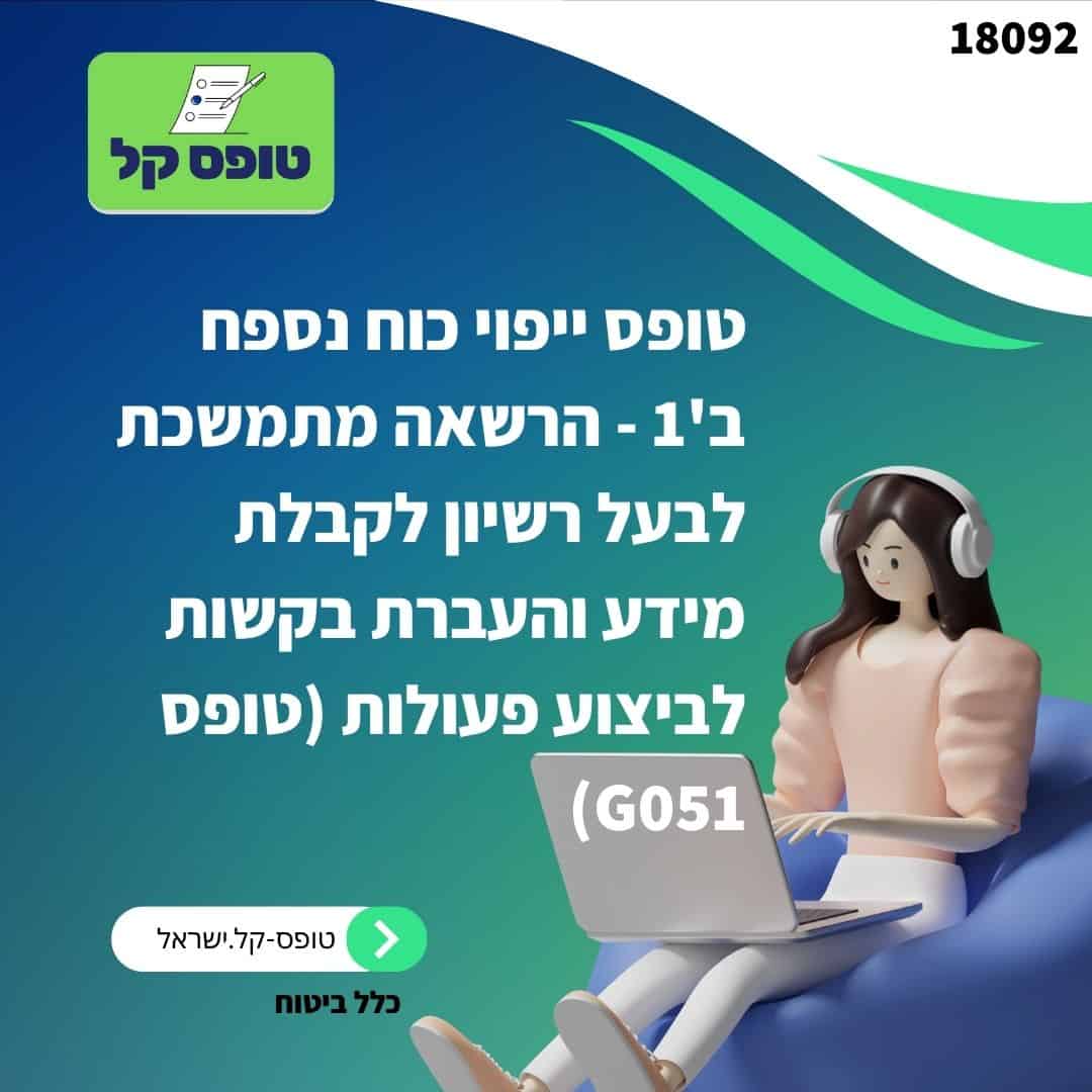 שם הטופס: טופס G051 - הרשאה מתמשכת לבעל רשיון לקבלת מידע והעברת בקשות לביצוע פעולות
