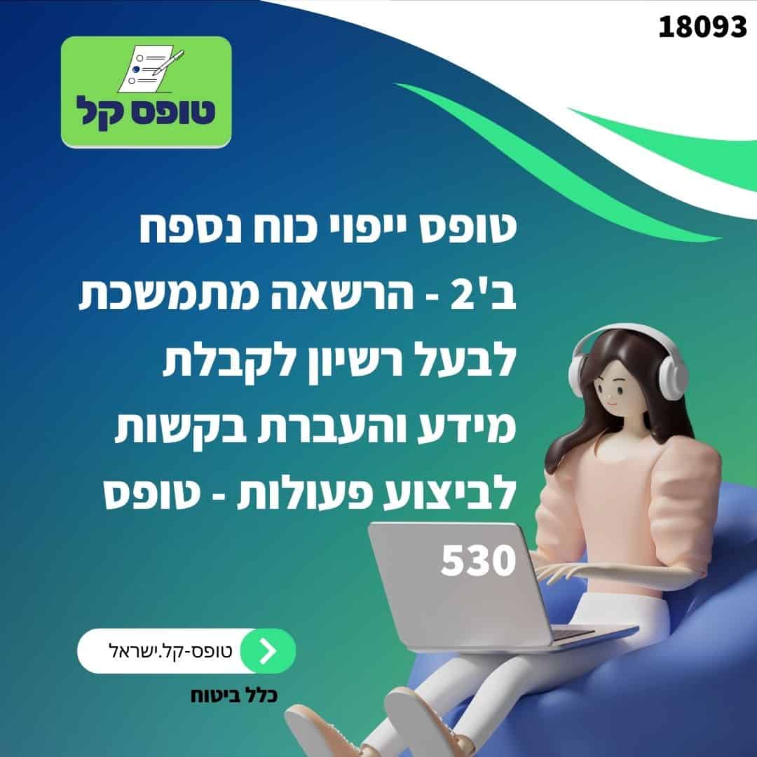 *לידיעתכם: האתר טופס קל הוא פורטל טפסים פרטי ואינו קשור בשום צורה לגופים ממשלתיים כאלו או אחרים. המידע מוגש לטובת הציבור אך עלולות ליפול טעויות במידע או שהמידע המוצג עלול להיות לא מעודכן ולכן אין להסתמך על המידע בצורה מוחלטת אלא יש לבדוק את הטפסים בטרם שליחתם עם הגופים המנפיקים.