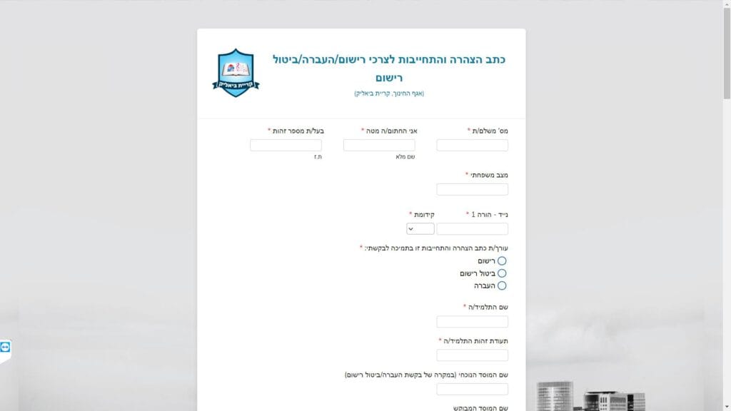 צילום מסך טופס כתב הצהרה והתחייבות - להורים עצמאיים - חינוך טופס מקוון