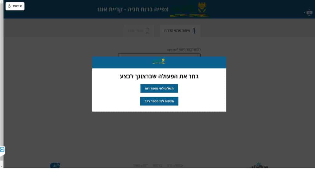 צילום מסך טופס לדוחות חניה כללי טופס מקוון