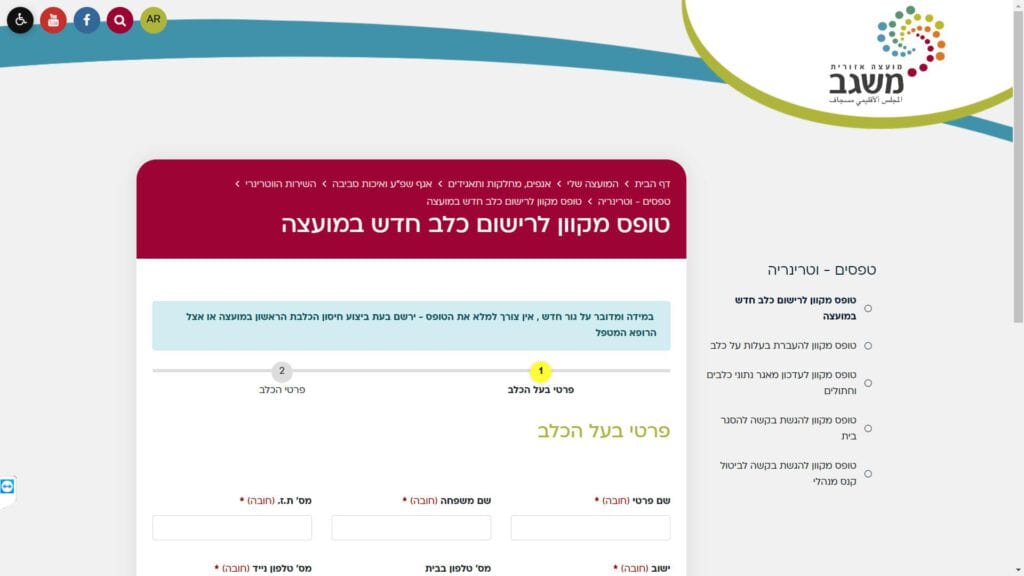 טופס לרישום כלב במועצה חלופה נגישה - כרגע לא קיימת.