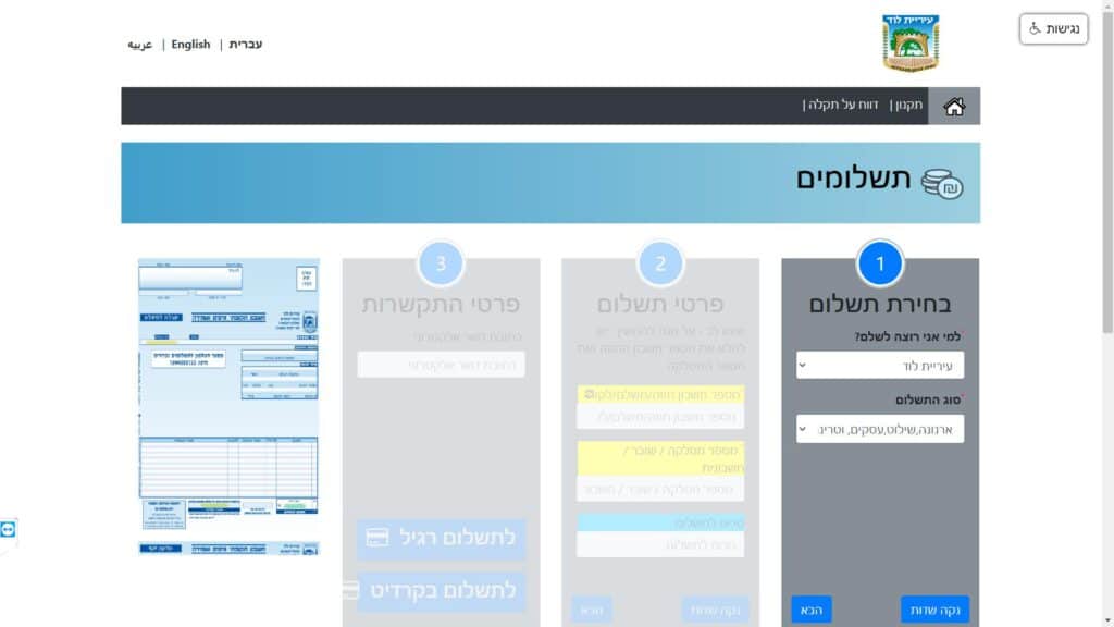 צילום מסך טופס לתשלום שילוט טופס מקוון
