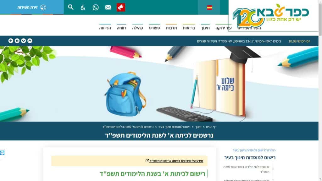 טופס קל » עיריות » עיריות בשרון » עיריית כפר סבא » חינוך יסודי » טופס מידע וטפסים בנושא רישום לכיתה א'