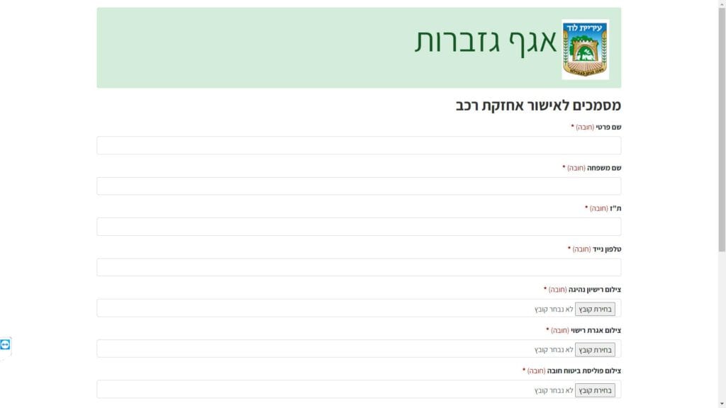 צילום מסך טופס מסמכים לאישור אחזקת רכב טופס מקוון