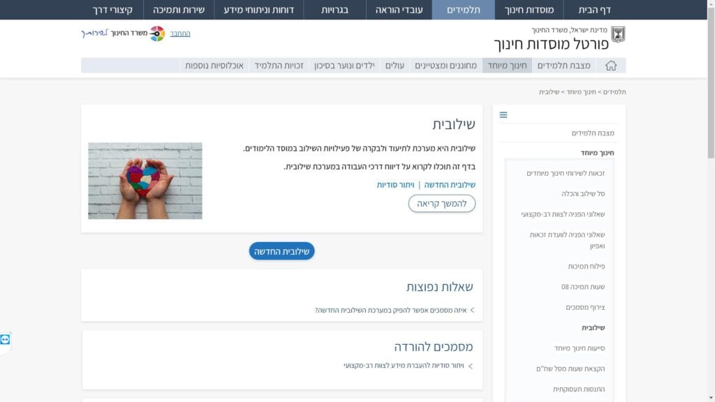 גוף שיתמוך בשאלות על טופס מערכת שילובית (חדשה וישנה)