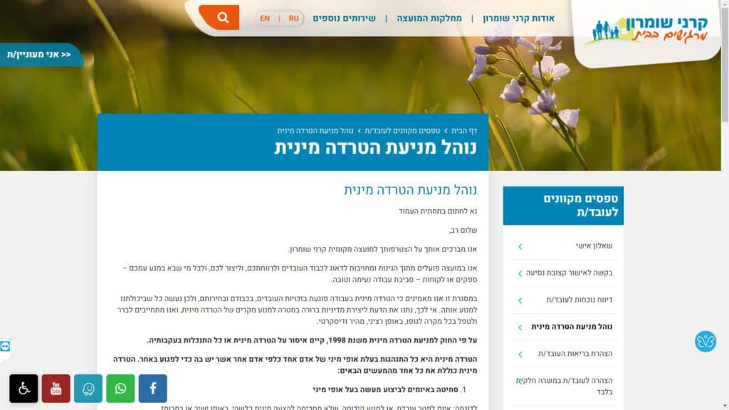 צילום מסך טופס נוהל מניעת הטרדה מינית טופס מקוון