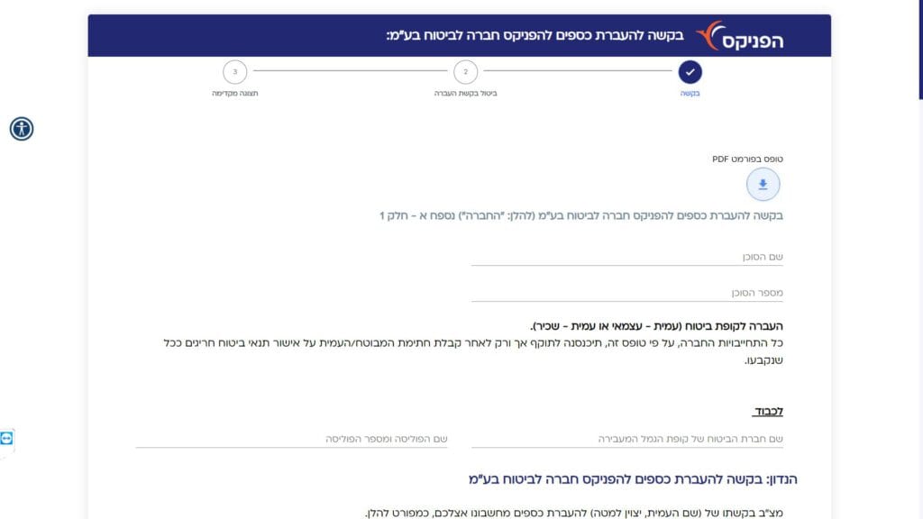 טופס נספח א' - בקשה להעברת כספים להפניקס חברה לביטוח בע"מ - ביטוח חיים חלופה נגישה - כרגע לא קיימת.