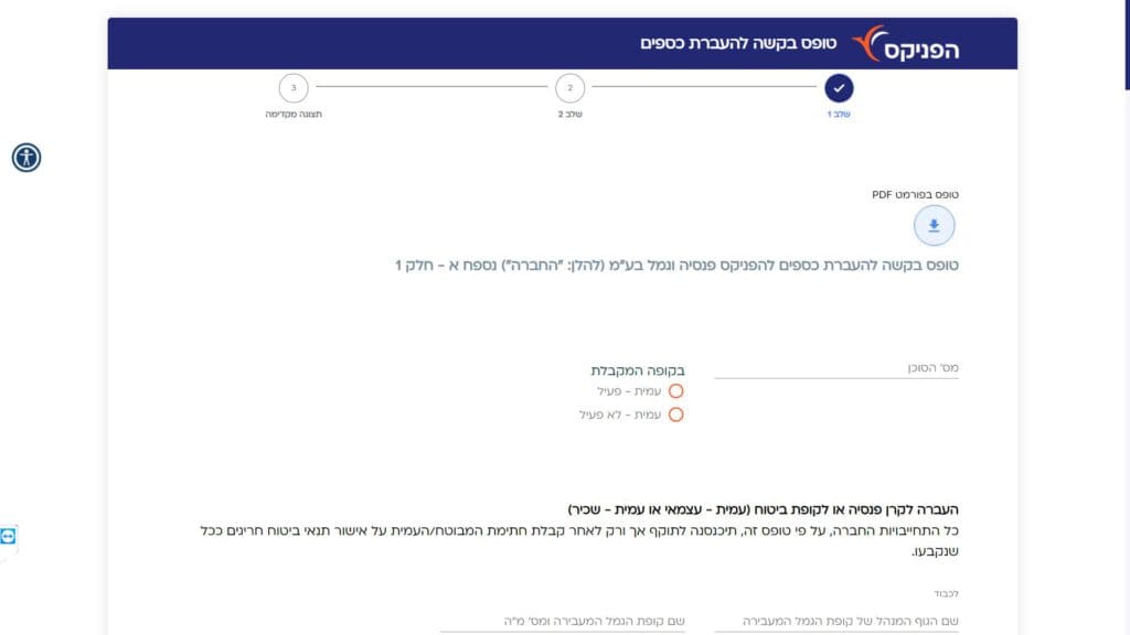 טופס נספח א' - טופס בקשה להעברת (ניוד) כספים להפניקס פנסיה וגמל בע"מ - הפניקס פנסיה חלופה נגישה - כרגע לא קיימת.
