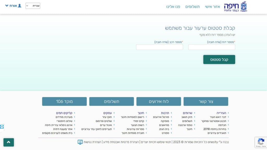 טופס קל » עיריות » עיריות בחיפה והקריות » עיריית חיפה » חניה » טופס סטטוס ערעור על דו"ח חניה