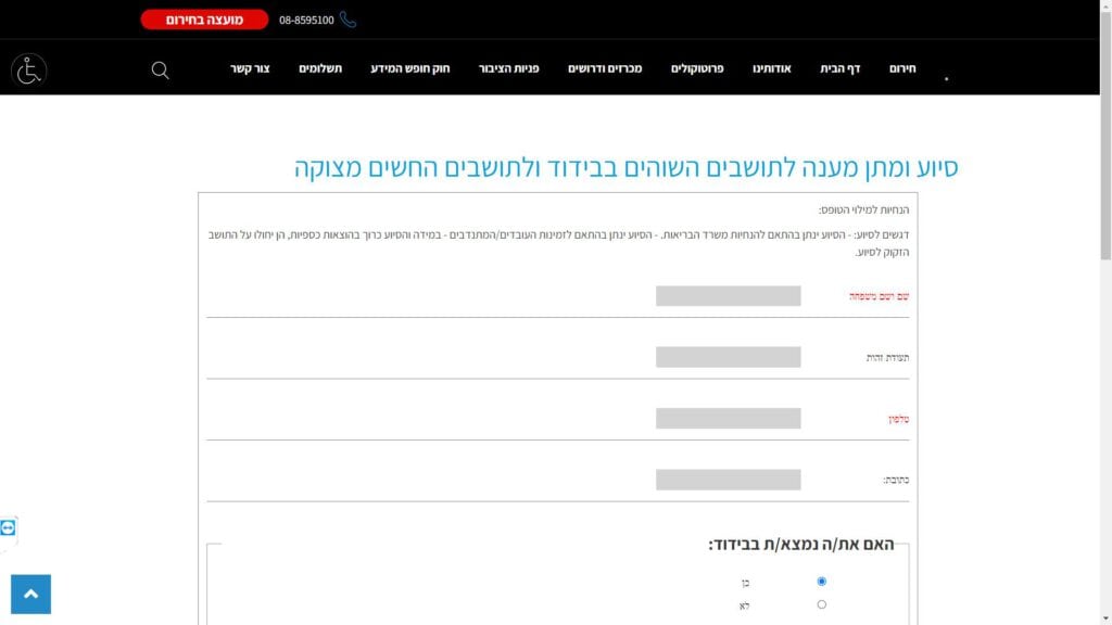 טופס סיוע ומתן מענה לתושבים השוהים בבידוד ולתושבים החשים מצוקה חלופה נגישה - כרגע לא קיימת.