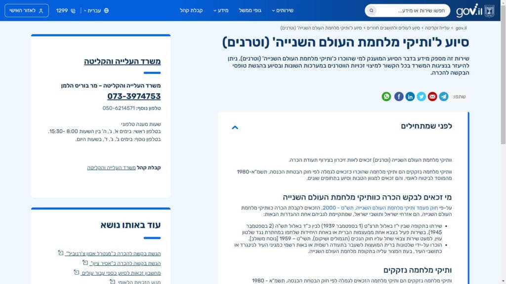 צילום מסך טופס סיוע ל'ותיקי מלחמת העולם השנייה' (וטרנים) טופס מקוון