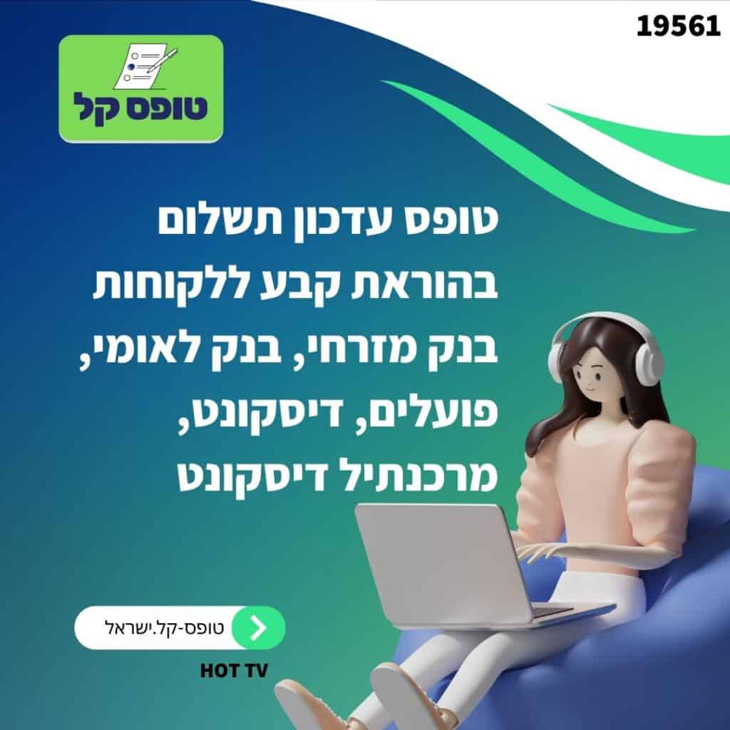 שם הטופס: טופס HOT TV - עדכון תשלום בהוראת קבע ללקוחות בנק מזרחי, בנק לאומי, פועלים, דיסקונט, מרכנתיל דיסקונט