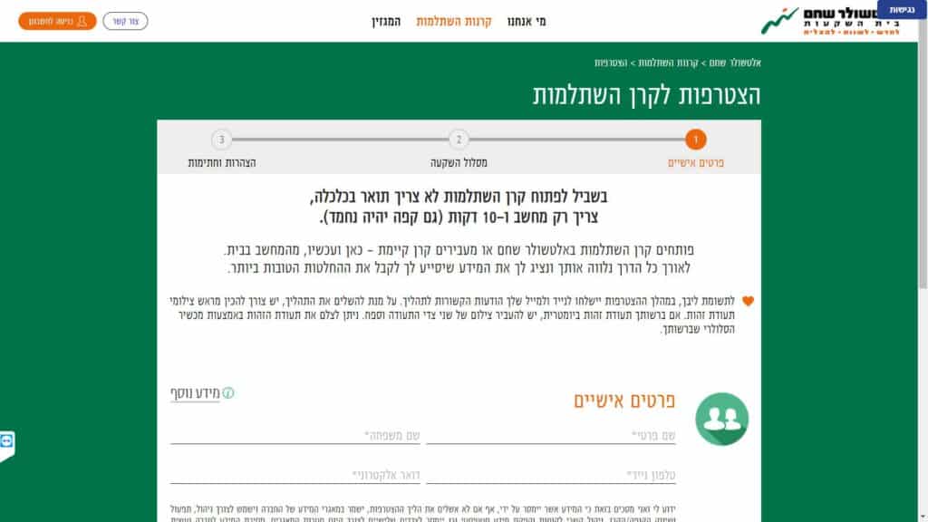 צילום מסך טופס ערכת הצטרפות לקרן השתלמות במעמד עצמאי טופס מקוון