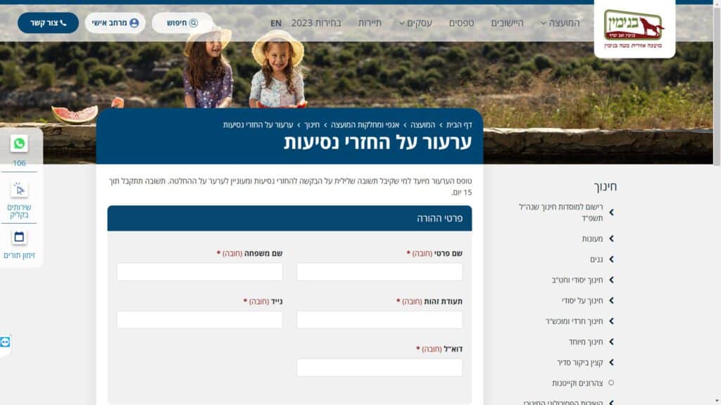 צילום מסך טופס ערעור על החזרי נסיעות טופס מקוון