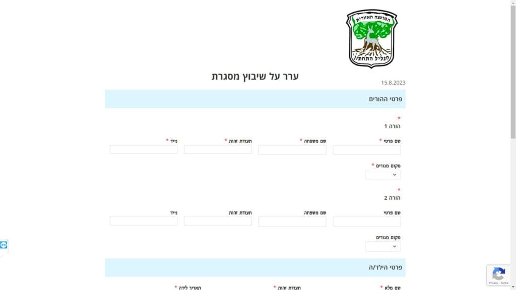 צילום מסך טופס ערר על שיבוץ במסגרת טופס מקוון