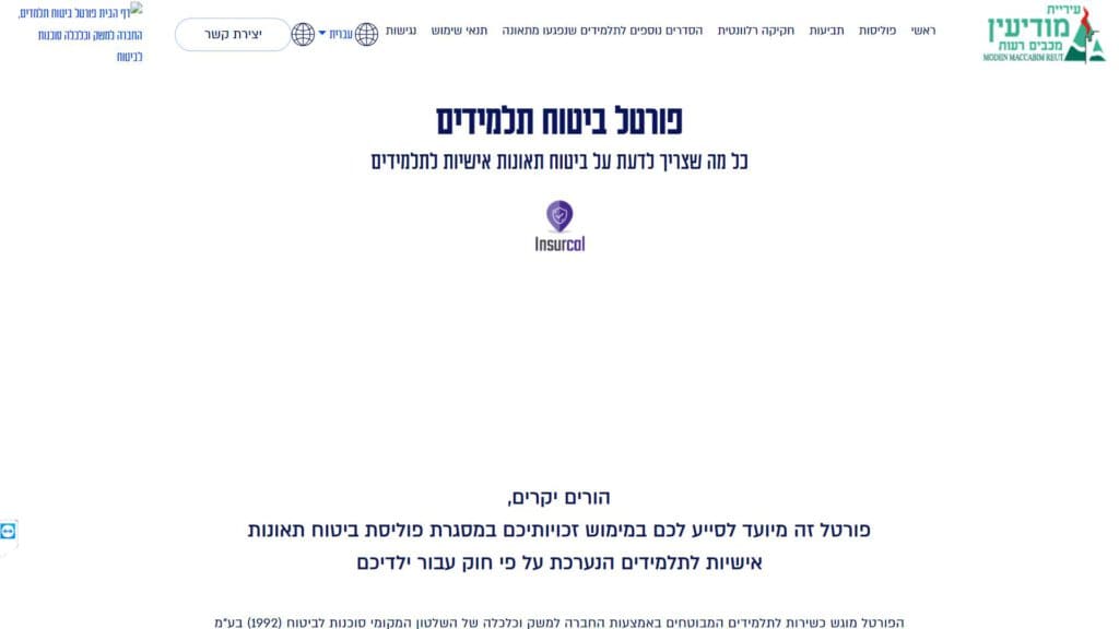 גוף שיתמוך בשאלות על טופס פורטל ביטוח תאונות אישיות תלמידים