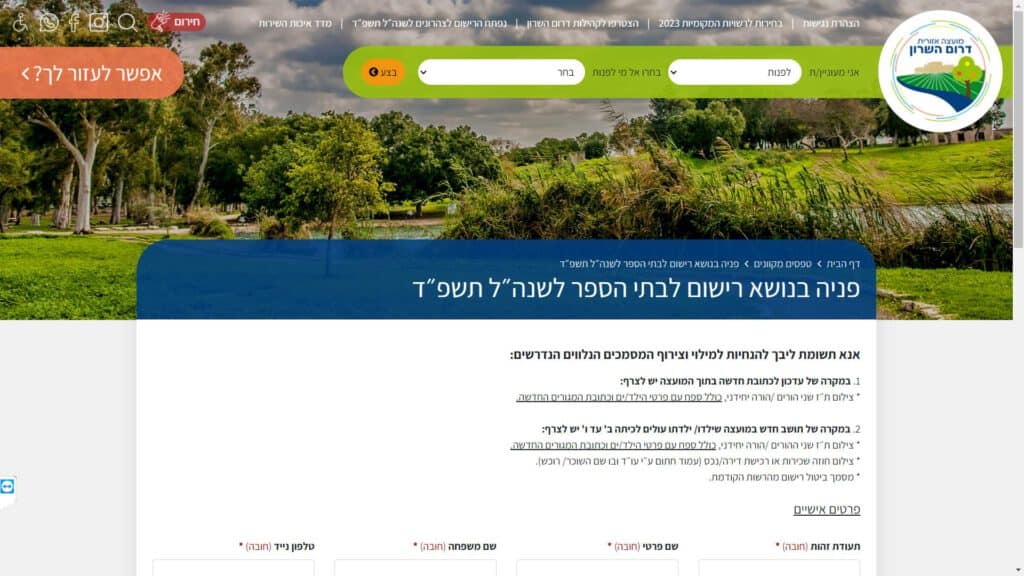 טופס קל » עיריות » עיריות בשרון » מועצה אזורית דרום השרון » חינוך » טופס פניה בנושא הרישום לבתי הספר לשנת הלימודים תשפ"ד