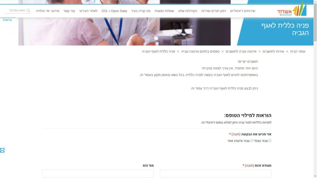 גוף שיתמוך בשאלות על טופס פניה כללי