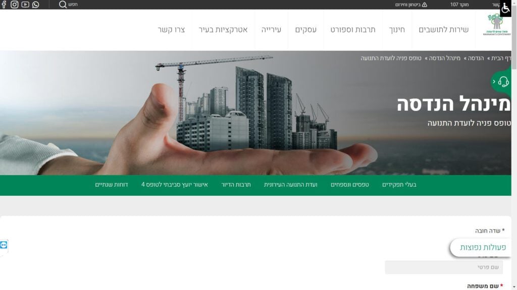 צילום מסך טופס פניה לועדת התנועה טופס מקוון