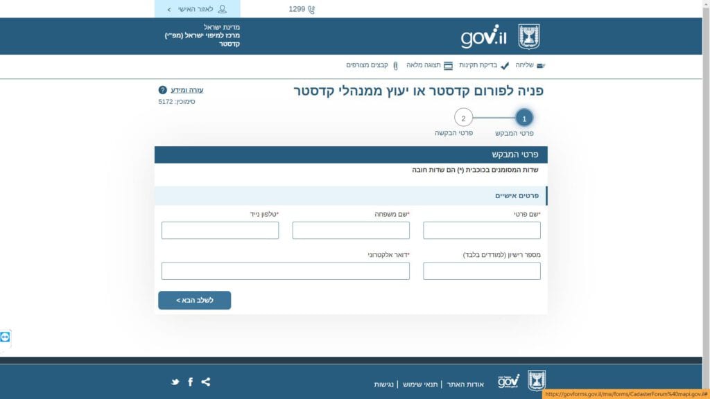 צילום מסך טופס פניה לפורום קדסטר טופס מקוון