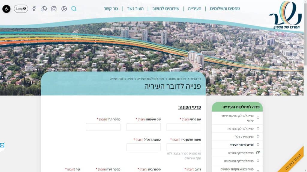 טופס פנייה לדובר העייריה חלופה נגישה - כרגע לא קיימת.