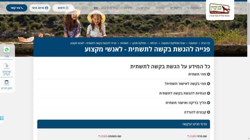 בתחילת המדריך צירפנו עבורך קישור להורדת טופס פנייה להגשת בקשה לתשתית – לאנשי מקצוע. יש ללחוץ על הכפתור ואתה תעבור להורדת הטופס. במידה והינך גולש ממכשיר סלולרי או אייפון לדוגמא שלא מתחיל את ההורדה בצורה מיידית, תוכל לגלול מטה במאמר אל הטופס לצפייה ישירה ולהוריד אותו משם אל המכשיר.