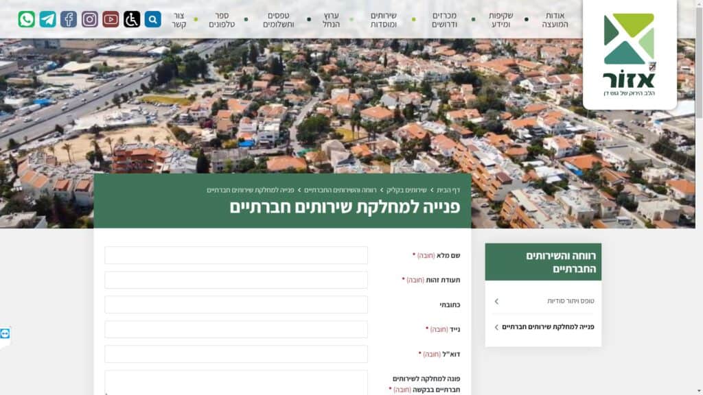 טופס פנייה למחלקת שירותים חברתיים חלופה נגישה - כרגע לא קיימת.