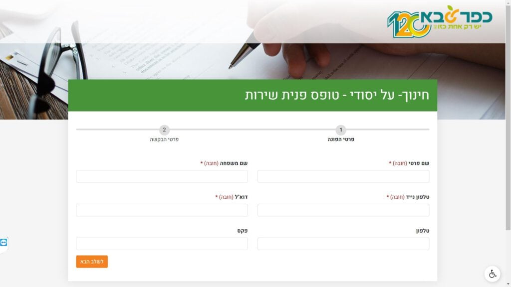 טופס פניית שירות - על יסודי חלופה נגישה - כרגע לא קיימת.
