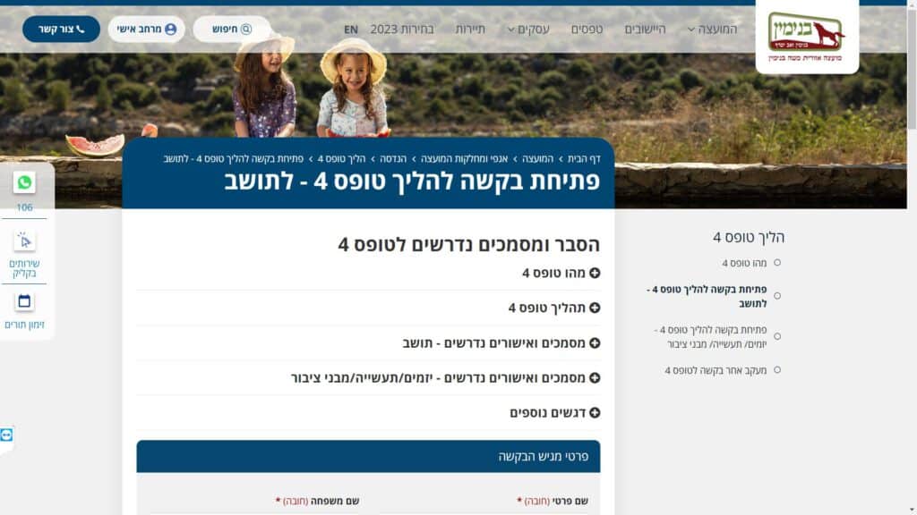 צילום מסך טופס פתיחת בקשה להליך טופס 4 - לתושב טופס מקוון