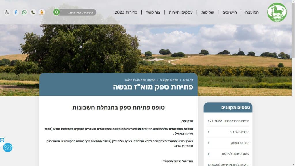 כתובת לשליחת מכתבים: בניין מועצה אזורית מנשה, מרכז אזורי מנשה ד.נ חפר 3780900