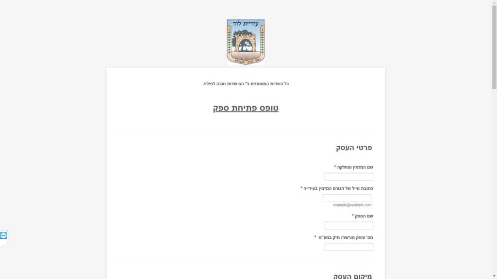 צילום מסך טופס פתיחת ספק טופס מקוון