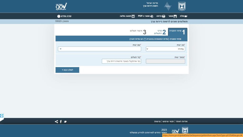 טופס קל » יחידות ממשלתיות » רשות ניירות ערך » כללי » טופס פ910 – תשלומים שונים לרשות ניירות ערך