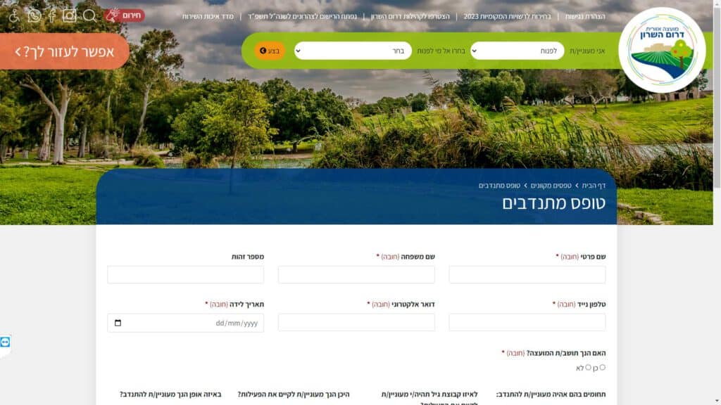 צילום מסך טופס צטרפות להתנדבות טופס מקוון