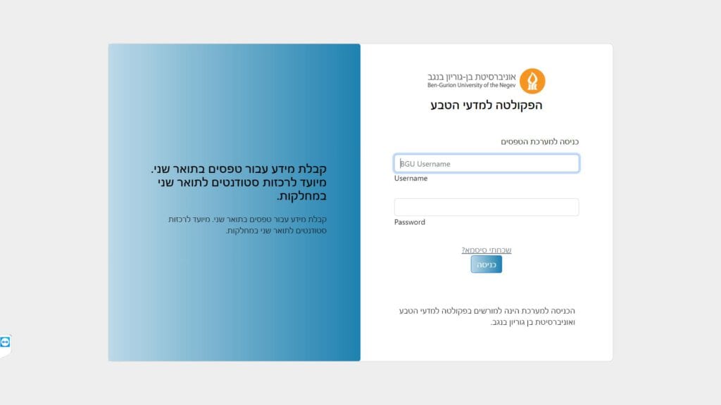 טופס קל » מוסדות לימוד » אוניברסיטת בן גוריון בנגב » הפקולטה למדעי הטבע - טפסים לתואר שני » טופס קבלת מידע עבור טפסים בתואר שני מיועד לרכזות סטודנטים לתואר שני במחלקות