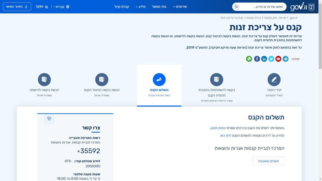 צילום מסך טופס קנס על צריכת זנות טופס מקוון