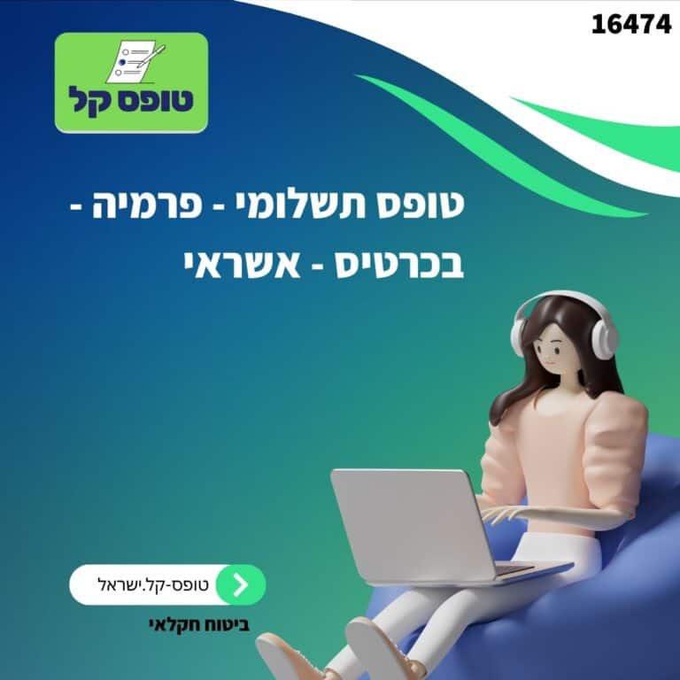 *לידיעתכם: האתר טופס קל הוא פורטל טפסים פרטי ואינו קשור בשום צורה לגופים ממשלתיים כאלו או אחרים. המידע מוגש לטובת הציבור אך עלולות ליפול טעויות במידע או שהמידע המוצג עלול להיות לא מעודכן ולכן אין להסתמך על המידע בצורה מוחלטת אלא יש לבדוק את הטפסים בטרם שליחתם עם הגופים המנפיקים.