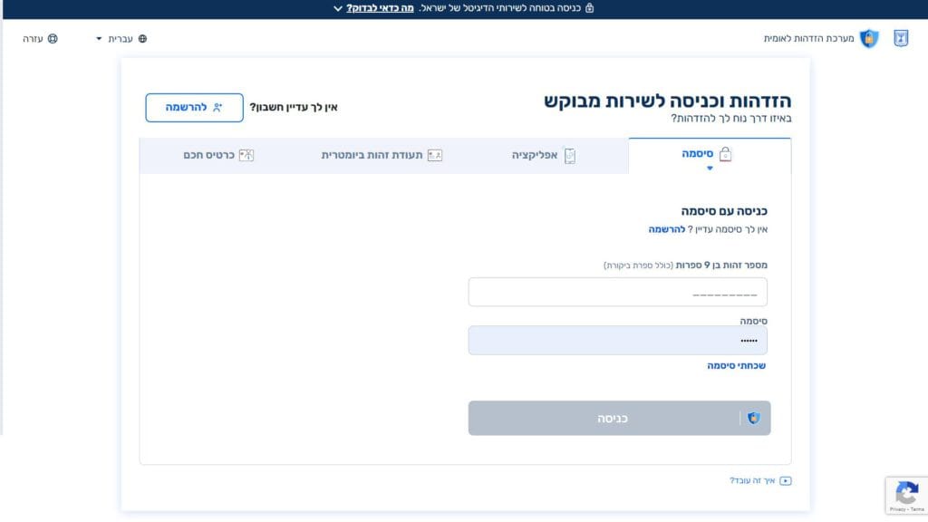 צילום מסך טופס רישום השתייכות לעדה דתית נוצרית במרשם האוכלוסין טופס מקוון