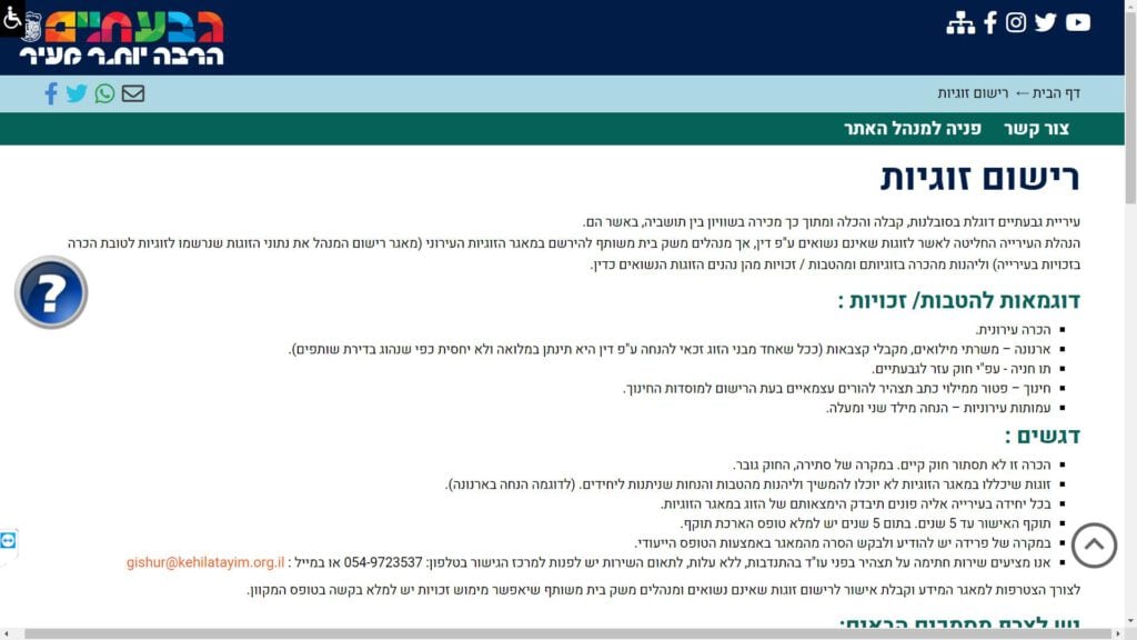 גוף שיתמוך בשאלות על טופס רישום זוגיות