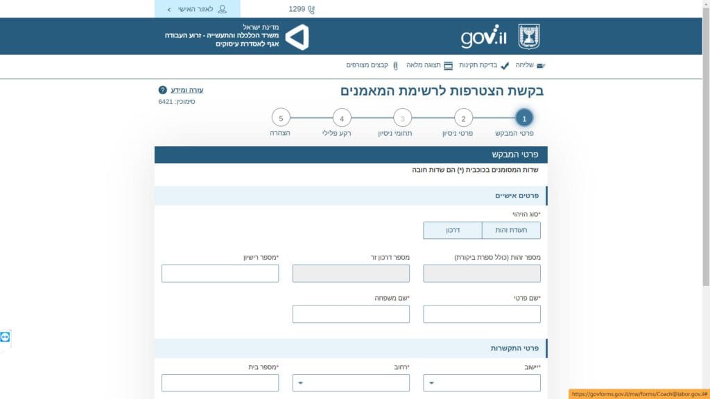 הטופס שייך לקטגוריות: משרדים ממשלתיים, משרד העבודה