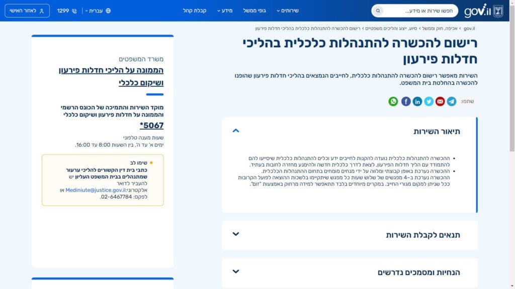 גוף שיתמוך בשאלות על טופס רישום להכשרה להתנהלות כלכלית בהליכי חדלות פירעון