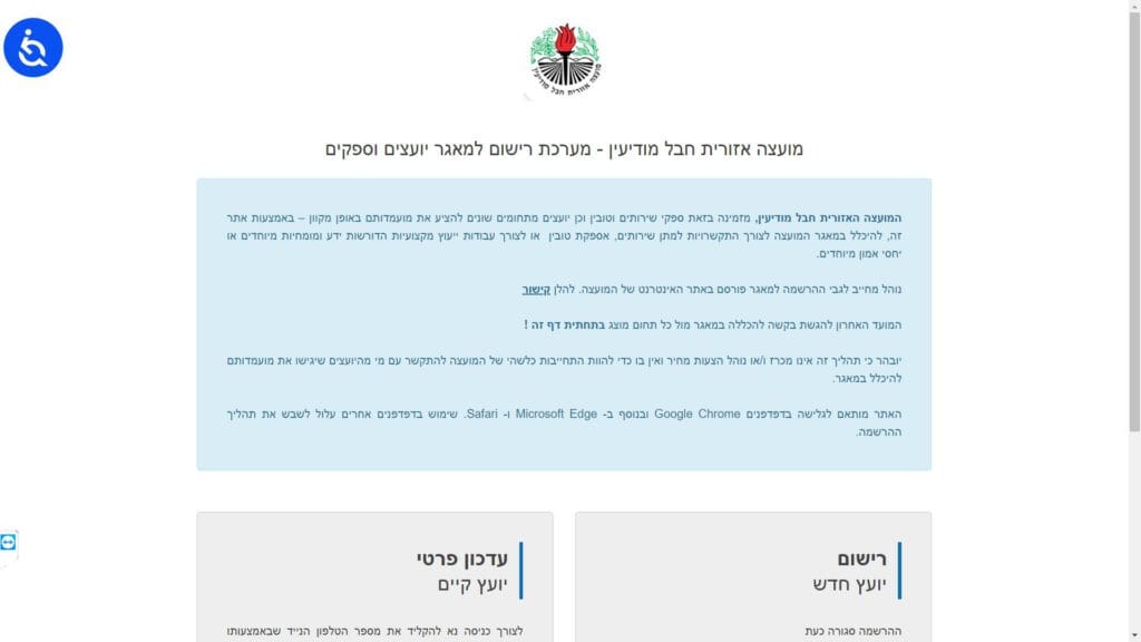 טופס רישום למאגר היועצים של המועצה חלופה נגישה - כרגע לא קיימת.