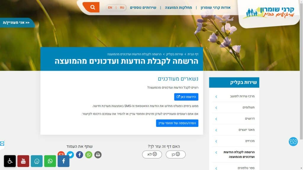 טופס רישום למערכת SMS של המוקד חלופה נגישה - כרגע לא קיימת.
