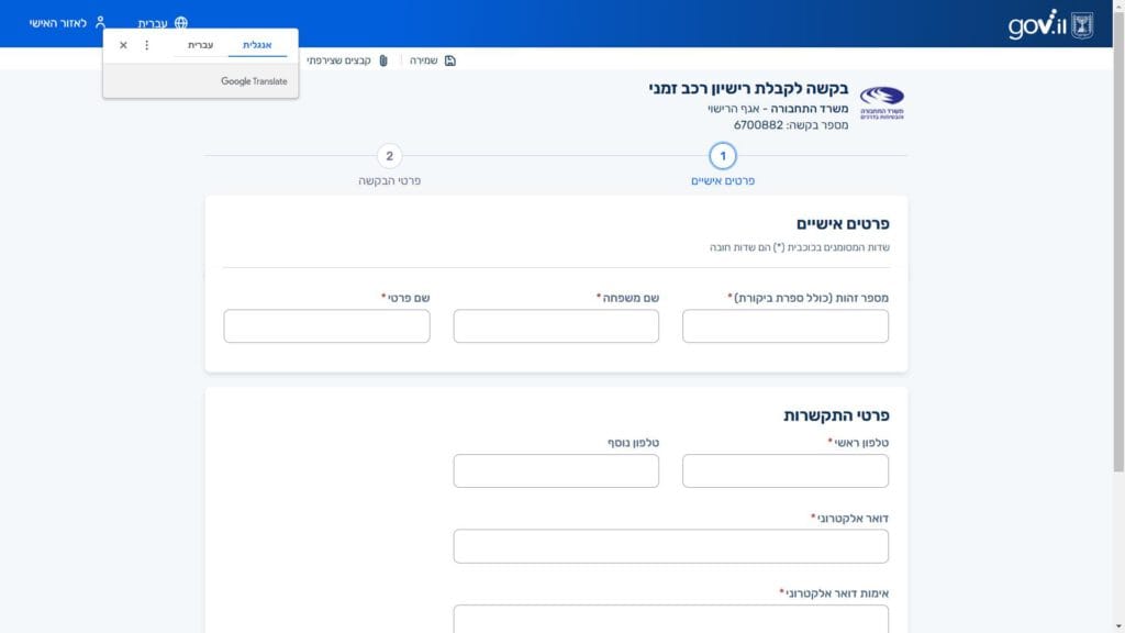 טופס רישום רכב חדש במכוני רישוי מורשים חלופה נגישה - כרגע לא קיימת.