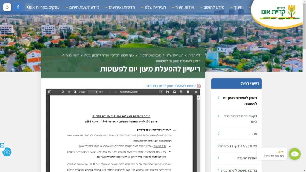צילום מסך טופס רישיון להפעלת מעון יום לפעוטות טופס מקוון