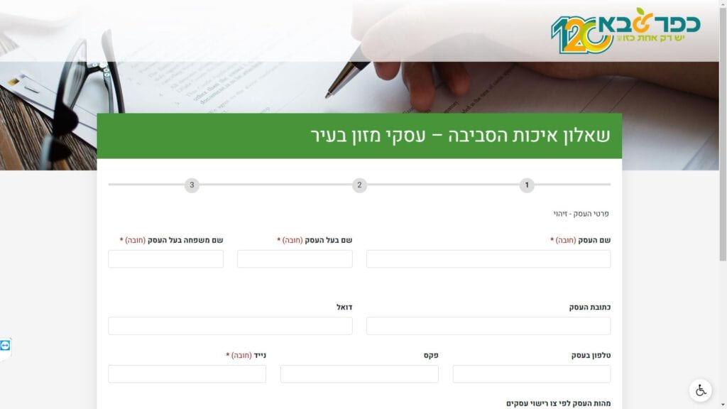 טופס שאלון איכות הסביבה לעסקי מזון בעיר חלופה נגישה - כרגע לא קיימת.