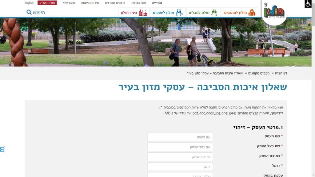 צילום מסך טופס שאלון איכות הסביבה - עסקי מזון בעיר טופס מקוון