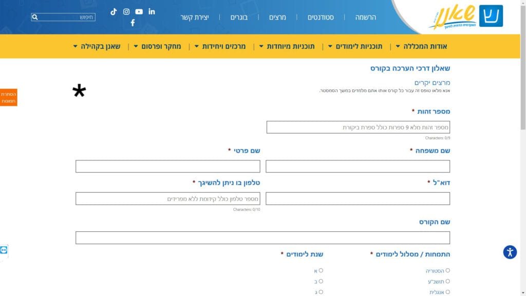 טופס שאלון דרכי הערכה בקורסשאלון הערכת איכות ההוראה חלופה נגישה - כרגע לא קיימת.