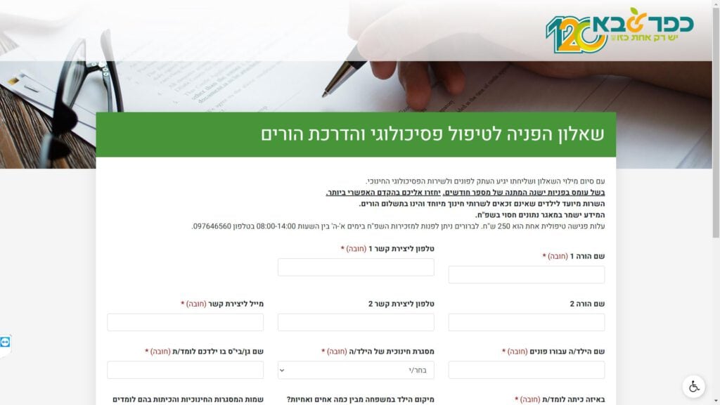 טופס שאלון הפניה לטיפול פסיכולוגי והדרכת הורים חלופה נגישה - כרגע לא קיימת.